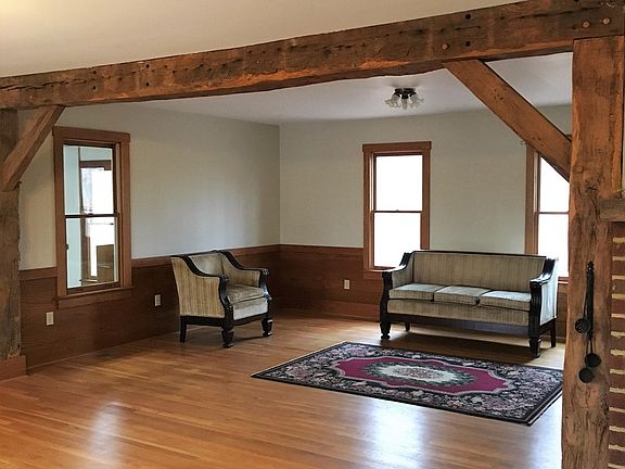 Beautiful custom contemporary three bedroom, two bath home on 53 acres! This bright home has a hard to find spacious open floor plan with gorgeous hardwood floors starting in the living room and continuing through the dining room and back to the first floor bedroom. Stunning natural wood beams run across the high ceilings in the living room and complement the natural finished decorative wood paneling throughout the downstairs. The kitchen is wonderfully situated for a quick meal or a large family gathering. The many windows are strategically placed and aligned to maximize the incredible outdoor views. The master bedroom and bathroom with jetted tub complete the first floor. The upstairs, features two very large bedrooms with ample storage, hardwood flooring and another full sized bathroom. The home sits back from the road on higher ground and was once home to several beautiful flower gardens, a chicken coop, greenhouse and a very well built 4 vehicle pole barn. And, last but not least, 53 acres! Amenities include, well, sewer, highspeed internet, cedar lined closets
