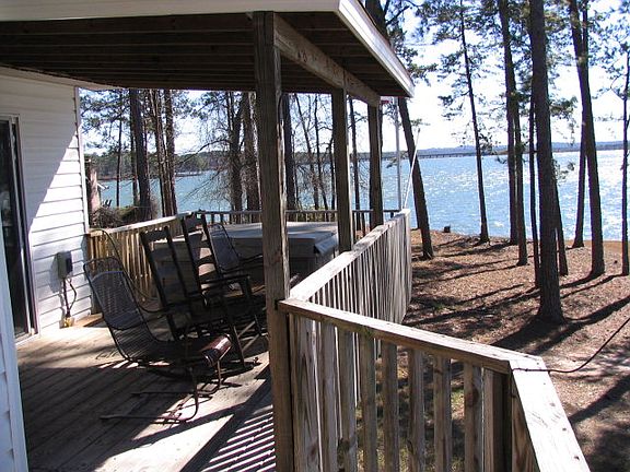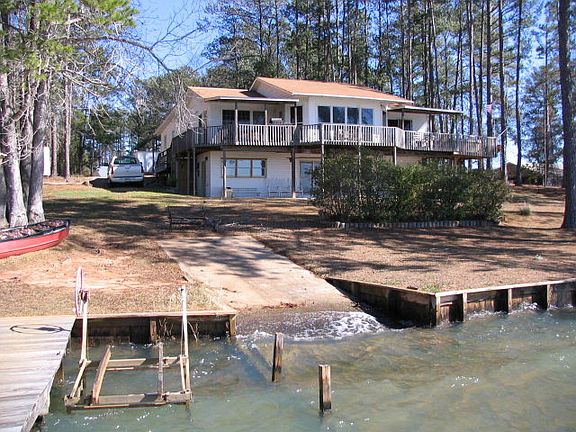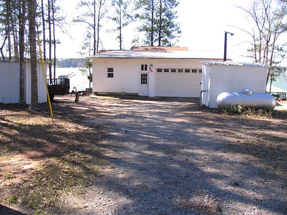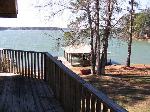 2 upstairs bdrms w/baths, 11x20 BUNKBED rm dwnstairs w/handmade beds for 9 ADULTS with camp-style bathroom + plumbed OUTHOUSE, 2 garages (2-car:20x24 / 1-car:11x22), separate up and down entrances, well or county water option, 2 master closets (2x5 +5x10 walk-in), 10x8 storage, 4.5 x15 storage, 2x8 coat closet, new roof 2008, propane heat option plus new electric AC/HEAT 2010 (warrantied till 2020), double boathouse w/lifts 2011, irrigation system, BOAT RAMP, Two 10x12 covered decks, 8x43 covered porch, hottub, well house, solar screens. Clear water, view from 3 sides, widest part of lake. Sunsets and Full Moon sets are spectacular!!! Livable AS IS or YOU ADD love (like paint, cleaning, pressure washing). Original owner/builder on site. A true DIAMOND in the rough that you can shine up!