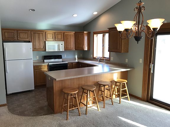 East Towne Condominiums combines the ease of condo living with the independent feel of a single-family home, and is conveniently situated in a quiet neighborhood in picturesque Random Lake, a quarter mile from the lake and easy access to STH 57. Flowing floor plan and lots of space throughout. Open concept living room with cathedral ceilings and a beautiful Pella patio door that opens to the outdoor patio area, a kitchen with expansive counter space and large breakfast bar, appliances included. Also on the 1st floor is a master bedroom suite with walk in closet and full bath, second bedroom with second full bath located adjacent. Baths have Kohler fixtures. First floor laundry room for your convenience. Continuing to its lovely lower level with fully finished rec room and full bath. Attached 2+ car garage. Yard and winter driveway maintenance is managed by the association. A charming spot for the next chapter of your life. Move in and enjoy!