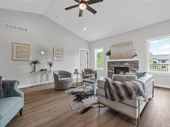 Discover unparalleled elegance in this exquisite ranch-style home, nestled on the walking trail in East Iowa City with this residence combines functionality with refined style. Enter the heart of the home to find an inviting kitchen and dining area that seamlessly flow into the expansive great room. The gourmet kitchen is a chef’s dream, featuring a breakfast bar, gleaming quartz countertops, designer cabinetry, pantry and top-of-the-line appliances. Experience everyday convenience with a thoughtfully designed mudroom complete with custom-built lockers, and a main floor laundry room for added ease. The cozy great room is perfect for gatherings, enhanced by a warm gas fireplace. Retreat to the luxurious primary suite, boasting double vanity and a spacious walk-in closet. The fully finished walk-out basement provides ample space for entertainment and relaxation, while the screened porch offers a serene outdoor retreat.