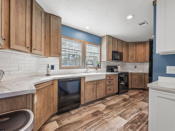 Thriving grape vinesSplit floor planBright open layoutMature pecan trees