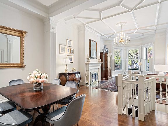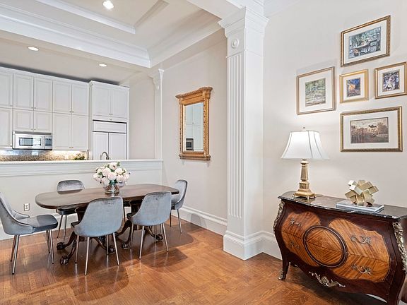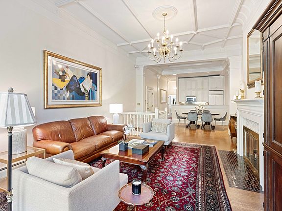 Picturesque views of the Commonwealth Ave Mall from this elegant & spacious 2 bed + duplex (easily converted to a 3 bed). The open floorplan with 12 ft ornate ceilings is ideal for formal entertaining or casual family living. Dining area is adjacent to the fireplaced living room, which features large windows that overlook the beautiful tree lined Comm Ave Mall across from the new Quin House Club. The renovated galley kitchen is open to the main living space. Both of the south facing bedrooms are located on the parlor level. The large primary bedroom has an abundance of closet storage and the renovated bath can be directly accessed the from the main bedroom or the hall. Floor-to-ceiling bookcases complete the guest bedroom. Coat closet & laundry are also on this main level. The lower-level is connected by a large, wide spiral staircase & features high ceilings & 2nd renovated full bath. Currently being used as a huge family room & office. Direct access to deeded storage & parking.
