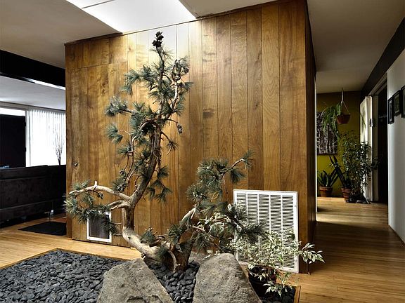 True Mid-Century Modern built in 1958. Thoughtfully updated in 2011. Very clean and open floor plan. Designer colors, new bamboo floors throughout, slate tile in baths, remodeled kitchen with granite and white lacquer cabinets, newer appliances, newer furnace, newer instant hot water, huge windows, fireplace, indoor rock gardens and atriums, two full baths each with whirlpool tubs, nice landscaping and outdoor living, garage and additional storage, backyard yoga or art studio. Neighborhood Description Safe. Safe. Safe, and close to everything. Schools, parks, library, restaurants, shopping, within walking distance.