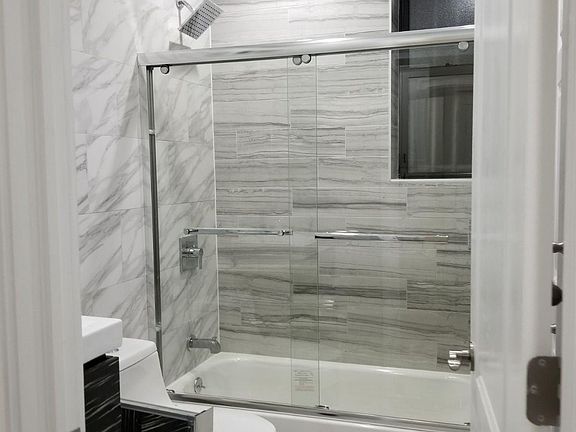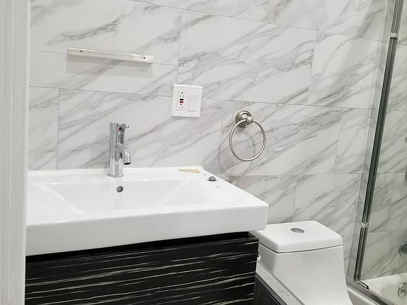 Brand new apartment floor to ceiling. Recessed lighting, chandeliered light fixtures, stainless steel refrigerator, stovetop and microwave range, European inspired bathroom, glass enclosed shower, bathroom storage. SEE THE PICS!! Close to Kings County, Downstate/University and Brookdale hospital, #3 train into city. Ask for Mike at 646-739-8769 or Chris 718-427-4458, Paragon Real Estate.