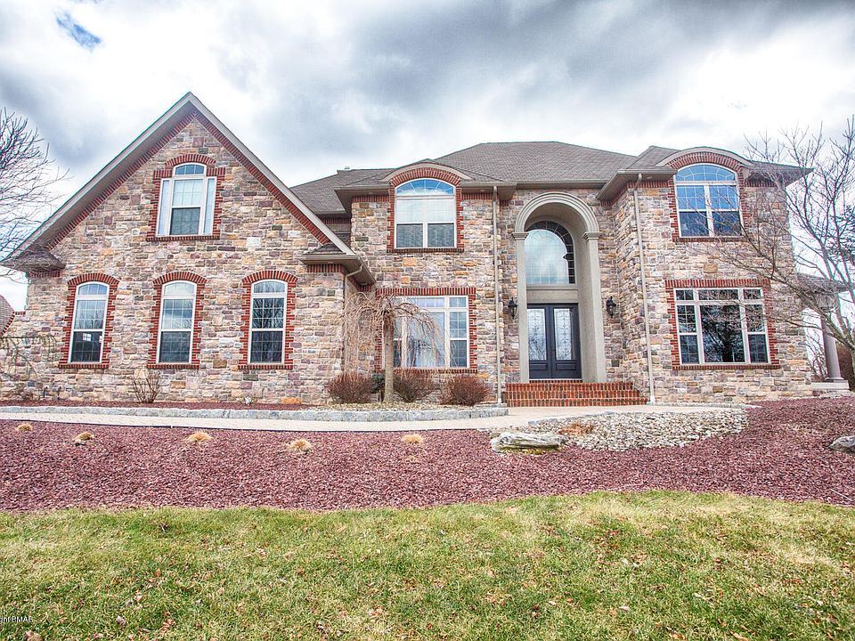 This Custom built 4 bedroom 3.5 bath 2 story is perched high on the hillside & offers the best view in Bushkill Township! This home was built by Georgeann Custom homes & offers Meticulous detail inside & out from pulling into the driveway the stone & brick retaining wall, stone front with brick accents, 4 car attached garage & 2 car detached garage with its own private 2nd flr, custom in ground heated pool with waterfall.