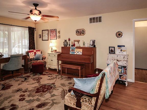 Roomy and comfortable, this 1700+ square foot mostly brick ranch home might be just what you need! 4 bedrooms, 2 baths, formal living, formal dining, separate family area with eating bar adjacent to kitchen, original wood floors in the original portion of the house, updated kitchen and baths, a one car attached (with storm shelter) and an oversized one car detached garage, expanded back patio, fenced back yard, play equipment and a chicken coop -- chickens may even be allowed to stay!