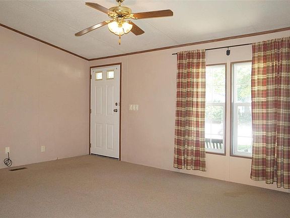 Enjoy Small Town Living in this Affordable 3 bedroom 2 bath Fleetwood mobile home on permanent foundation with large breezeway and 2 car detached garage. This all electric home includes appliances, refrigerator, stove, microwave, washer and dryer. Updates are roof 2012, carpet 2016, hot water heater 2008, HVAC 2019. Enjoy your evenings on the covered front porch. The 2 car side load garage is spacious and features auto garage door openers and a closet with shelving for storage. There is a shed for your lawn equipment. Passed Occupancy Inspection. Hurry to schedule your showing today!