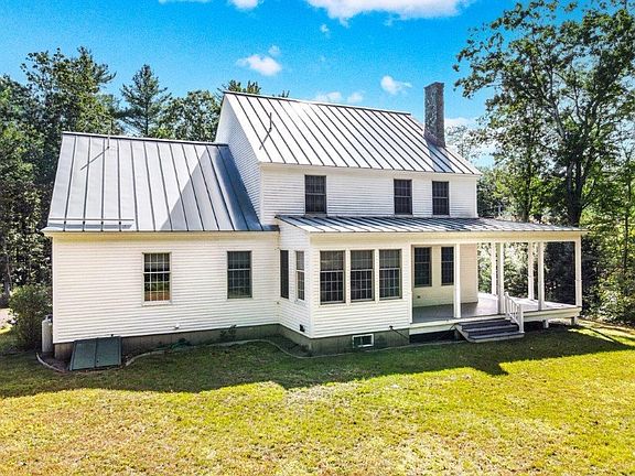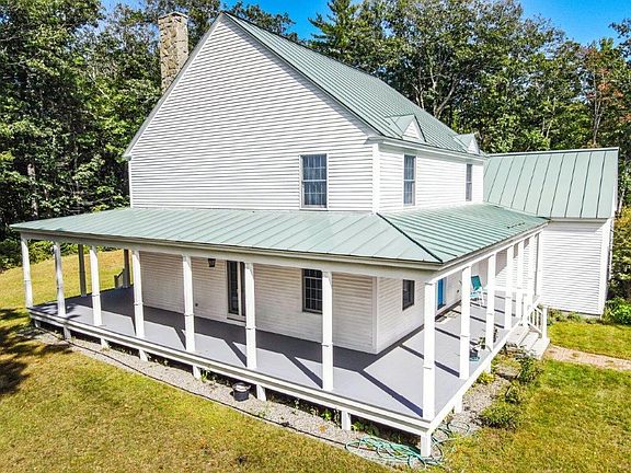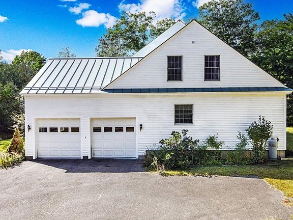 Well-designed Contemporary with high quality finishes and smart floor plan. Privately set on 4.59 surveyed acres, the house is hidden from the road. Easy living on the main floor with the large first floor primary bedroom, full bathroom and walk-in closet, lovely living room with stone chimney and VT Casting enameled wood stove that is open to the kitchen, pantry, and spacious dining area. Also, first floor laundry and a formal dining room and separate office, both with glass doors off the main foyer. Gleaming oak floors throughout and high ceilings with crown molding, radiant heat on the first floor, baseboard on the second. Upstairs in this attractive 3,000+ sq. ft. home are three bedrooms, another room for an office plus a family room or playroom at the top of the stairs. One of the bedrooms has its own bathroom with shower. Two of the other bedrooms have a shared bathroom between them. The unfinished basement is huge with high ceilings. There's a woodstove on a separate flue in the basement next to the oil burner and separate hot water heater. Attached two-car garage plus a 20'x28' separate garage with storage space above. On-demand generator, paved driveway, metal roof and wrap around porch finish off this pretty home.