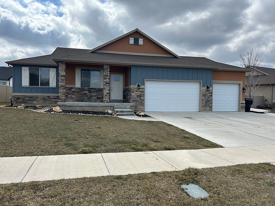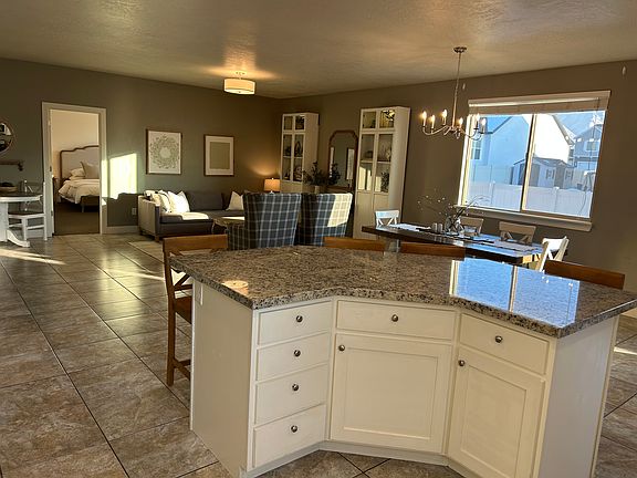 Beautiful like new rambler located just minutes from I-15. Fully fenced yard with mountain views. Home is 3840 sq ft 4 bedroom 3 baths. Large kitchen family room with granite countertops throughout. Main floor laundry Basement is partial finished, includes bedroom, bath and office. Three car garage and RV space gives you plenty of room for parking. Walking trails surround the neighborhood with a community park just down the street. The neighborhood is spectacular, great people, awesome community. One year lease required. May renew yearly if desired. Tenant to pay all utilities and to maintain and care for the yard and sprinklers. Will need to winterize all sprinklers for the winter months. No smoking or vaping on the premises.