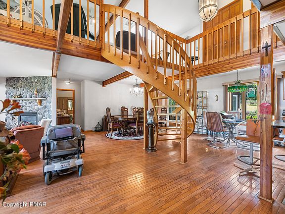 Property is under contract and is considering back up offers only at this time. Luxury living at its finest...this custom designed Mountain Chalet has seasonal lakeview. This beautiful home offers 3,059 sf of high quality construction that includes cedar siding, oak hardwood flooring, large gourmet kitchen with SS appliances, granite countertops, plenty of windows for natural lighting, 2 fireplaces, spacious primary bedroom with jacuzzi tub and walk in shower on first floor, laundry room, den/office, a 17 kw house generator. This home offers 3 bedrooms and 3 full baths, sunroom and rear deck. Short Term Rental use is a permitted use, check with Township for requirements. This is an Estate Sale, house is being sold as is. Schedule your showing today to see this unique home.