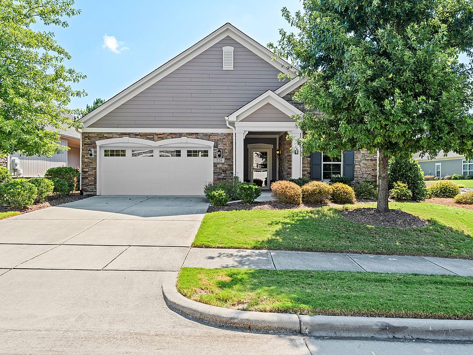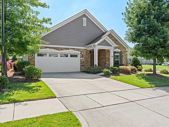 Welcome to your dream home in the prestigious Courtyards at O'Kelly Chapel, a sought-after 55+ community in West Cary offering low-maintenance, single-level living at its finest. This stunning end-unit home boasts 2 bedrooms, 2 full bathrooms, and approximately 1,750 sq. ft. of elegant living space, designed for comfort and style. Step inside to discover an open-concept floor plan where the family room, dining area, and gourmet kitchen seamlessly connect, creating the perfect space for entertaining or relaxed everyday living. The chef's kitchen features gleaming stainless steel appliances, granite countertops, and a large center island with seating, ideal for casual meals or gatherings. Gorgeous engineered hardwood floors flow throughout the main living areas. The primary bedroom is a serene retreat, complete with a tray ceiling and french doors that open to a charming screened porch with flagstone flooring—perfect for enjoying your morning coffee or evening sunsets. The luxurious en-suite bathroom offers a dual vanity, walk-in shower, and ample closet space. A second bedroom and full bathroom provide flexibility for guests or additional needs. This home also features a versatile flex space, perfect for a home office, hobby room, cozy reading nook, or even a fitness area—the possibilities are endless to suit your lifestyle. With ample natural light and thoughtful design, this multi-purpose room adds incredible functionality to the home. At the heart of this home is a private flagstone patio and courtyard, surrounded by lush, professionally maintained landscaping, offering a tranquil outdoor oasis for relaxation or entertaining. As an end unit, this home enjoys added privacy and abundant natural light, enhancing its airy and inviting atmosphere. Additional highlights include a two-car plus garage, energy-efficient design, and access to the community's top-notch amenities, including walking trails, a clubhouse, and easy proximity to NC-540, shopping, dining, and the American Tobacco Trail. With HOA-maintained grounds, this lock-and-leave lifestyle is perfect for those seeking convenience without sacrificing luxury. Don't miss the opportunity to own this meticulously maintained home in one of Cary's most desirable communities!