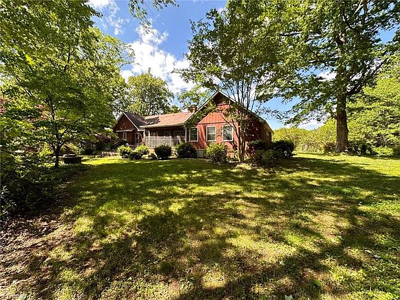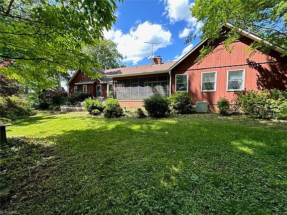 Dine out on the screened porch at this secluded home in woodsy loveliness on 3 acres. Here is a chance to be creative and have just what you want with this one that needs a little work. 3 bedrooms, 3 baths and a home office. The circular drive accents vividly the gracefulness of the property. The fireplace is a design highlight and attracts cozy gatherings when temperatures drop. Step outside and observe the surroundings from your very own deck. You will be grateful for such additional features as laminate flooring, walk-in closet in primary suite and spacious eat-in kitchen with kitchen appliances included. Garage just needs a garage door to completely enclose the space, unfinished basement great for storage or canning you fresh vegetables, garden area, large front fields with some fencing. Just minutes from Lake Reidsville, parks, walking trails, and recreation areas.