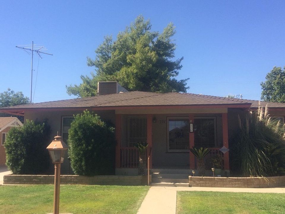 Come see this two bedroom, one bath starter home. Great for first time buyer or investor. Even has a bonus room, includes central air and heat, ceiling fans throughout, even the refrigerator and spa are included. Has a covered patio and large back yard with mature trees for shade. Call for private showing
