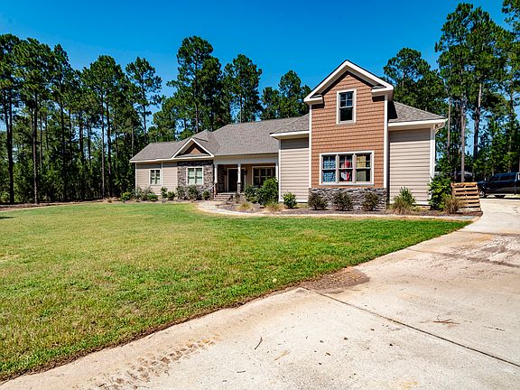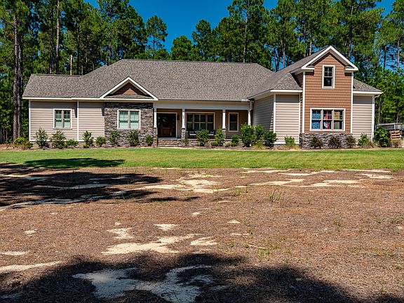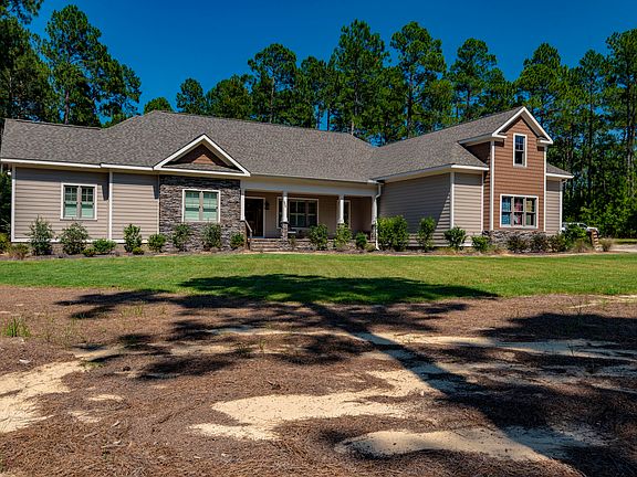 Wonderful 5 bedroom home in Grande Pines is waiting for a new family to make it their own. This custom built home at the end of a cull de sac sits on 2.4 acres. The one owner home has all the upgrades you need. As you step into the entrance you will be welcomed by a stone fireplace in the living room & a beautiful view of the salt water pool & backyard. The kitchen is a cook's dream complete with double oven, gas cooktop, pot filler, custom built hood range, farmhouse sink, breakfast bar, island with prep sink, a walk in pantry, SS appliances including wine cooler! The owner's suite offers a sitting area perfect for reading or relaxing. A beautiful barn door opens to his/her's walk in closets & bath with large walk in shower with 2 shower heads. The second bedroom on the main level has ensuite bath. Two other guests rooms share a bath. Upstairs you will find 2 large storage areas (one has been wired for mini split) desk space, full bath & bonus room that could be used as a bedroom. Other features include crown moulding, mini split in garage, hardwoods & tile flooring. The screened porch has been wired for TV. Many rooms have custom plantation shutters. Tank is leased through Sandhills Propane & is used for gas cooktop, tankless water heater, fire pit & grill. The crawlspace is encapsulated.