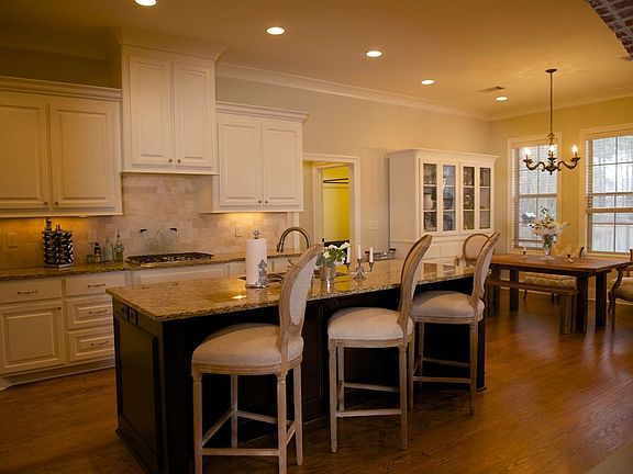 Spacious and exquisitely appointed 4 Bedroom, 3.5 Bathroom home with wood floors, solid surface countertops (St. Cecilia Granite, Crema Marfil Marble, Ivory Travertine), brick accents with beautiful archway separating the family room from the kitchen and its oversized island! the home also offers oversized second/third bedrooms downstairs with bathroom, powder room, dry bar with ice maker, separate office nook, and large laundry room with folding counter and sink! The Master Bedroom and Bathroom truly are one of a kind! Bathroom offers separate vanities PLUS knee space for her to relax while getting ready for the day or evening out! Out back, the home offers a covered back porch with fireplace that overlooks large, landscaped lawn with trees offering shade in the afternoons! Make plans to see this home today!