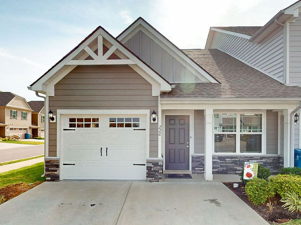 Fresh paint and new carpet. End unit townhouse with greenspace behind. Low maintenance living. Two bed, 2.5 bath with master bedroom on the main level. Granite countertop in kitchen. Fenced rear patio is ready for grilling or relaxing. Outdoor pergola can remain. Convenient to both Smyrna, Nissan and Murfreesboro. The community offers walking trails and a playground for additional enjoyment.