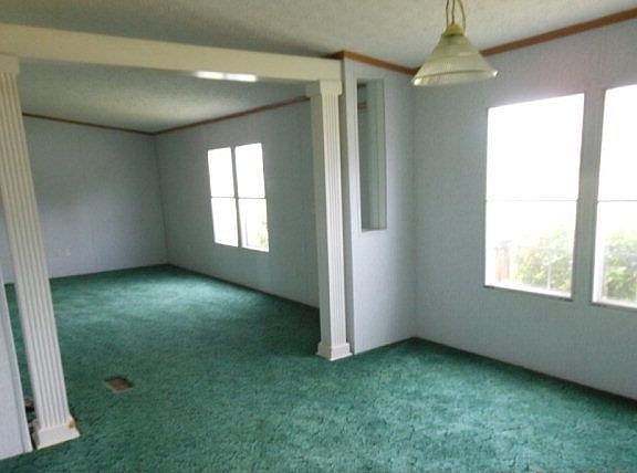 This 3 bedroom 2 bath mobile home located in Byron offers a pantry in the kitchen, separate dining room, a living room and den, and fenced in backyard.