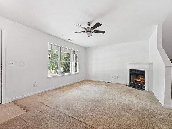 This 2-bedroom end unit townhome offers curb appeal and is perfectly located in one of Apex's most sought-after locations. Just minutes from shopping/dining, entertainment, major highways, and within walking distance to the local elementary school, this home is ideal for anyone looking for convenience and community. Step inside to an open floor plan that makes entertaining a breeze. The inviting Family Room features a corner gas log fireplace and flows seamlessly into the Dining Room, creating a warm and welcoming space for gatherings. The light-filled Kitchen is equipped with new LVP flooring, a center island, and a breakfast nook, making meal prep and casual dining a breeze. Sliding glass doors lead to a private patio, perfect for entertaining or enjoying the serene, tree-lined backyard. Upstairs, you'll find dual Primary Suites, each with vaulted ceilings, walk-in closets, and an abundance of natural light. This layout offers privacy and comfort, making it a perfect retreat at the end of the day. The outside storage room off the patio provides additional space for your storage needs. Seller is offering a $1,500 carpet allowance payable to the buyer on the settlement statement, allowing you to customize the carpeting to your liking.