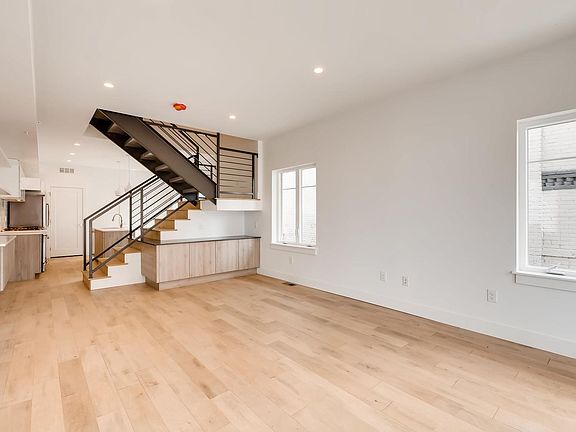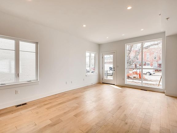 Bright, open, corner townhome in remarkable Baker West. Restaurants, gyms, breweries, distilleries and the Santa Fe Arts District are all within an easy walk. Main floor has high ceilings and birch floors through the living/dining space and the kitchen, with stainless Jenn-Air appliances (french door fridge and gas range) and beautiful finishes. The master suite upstairs has a balcony and mountain views, along with a walk-in closet and a huge tiled shower. The second bedroom is also en suite and is a real bedroom -- an adult-sized bed and furniture is encouraged. On the top floor is a rooftop deck with privacy (thanks to the corner) and spectacular views. The one-car garage has high ceilings for additional storage options. This is a beautiful, contemporary townhome (not a slot home) with the quality of construction, design and finishes you don't find at this price point.