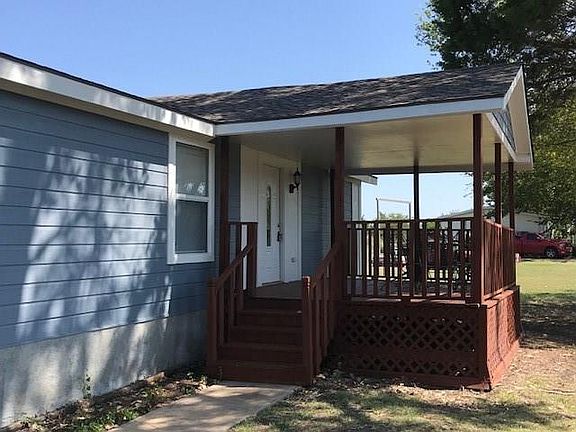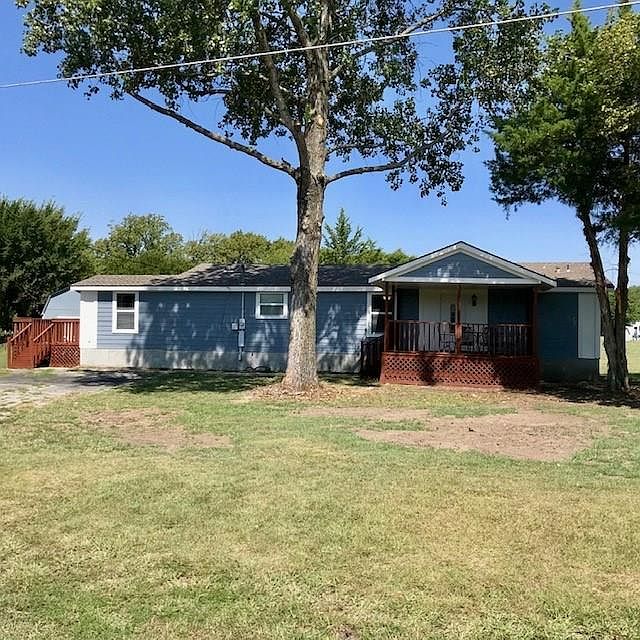 Bring the animals and the work shop and move to the country. This freshly painted 3 split bedroom and an office or 4 split bedroom modular home sits on 1.52 acres on a quiet cul-de-sac in Palmer. It is in Red Oak ISD but not in the city limits. Sit outside on one of the three decks, two are covered, and watch the sun rise or set which ever you prefer. Within the 1588 sq ft you will find plenty of closets, storage and cabinets. French doors open up from the living room to the covered back deck. There is room for your outside equipment in the 12x16 storage shed with a loft. Refrigerator and outside furniture on front porch will remain.