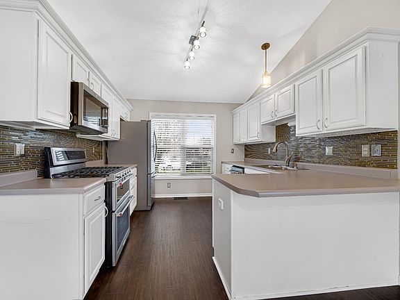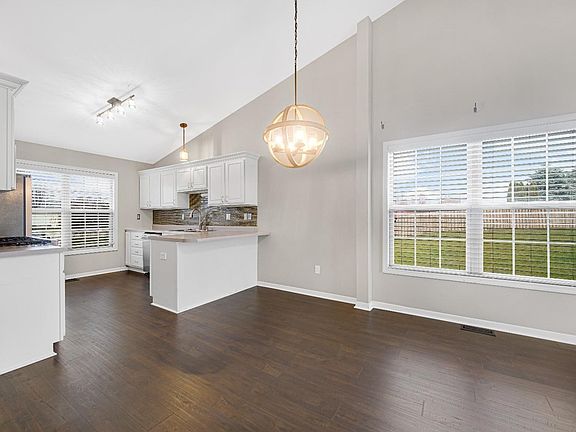 Beautifully updated 1.5-story on a half acre lot! Stepping through the foyer, you'll immediately notice the fresh paint, durable (NEW) plank flooring & cavernous cathedral ceilings that flow throughout the open-concept main level. The gorgeous eat-in kitchen features a stylish backsplash, stainless steel (KitchenAid & Frigidaire) appliances & opens up to the dining area/sprawling living room that walks out to the deck; the perfect spot to cozy up with a good book! Your master suite is just off the living room, offering a large walk-in closet & lovely bath en suite! Rounding out the main is a half bath & laundry room (NEW LG washer & dryer), while the upstairs boasts two spacious bedrooms (both w/ walk-in closets), plus a full guest bath! Enjoy hosting friends for cookouts next summer in your fenced backyard retreat, thanks to the MASSIVE 38x18 Trex composite deck! Storage shed & attached 2-car garage, NEW water heater, dishwasher, vapor barrier in crawl, largest lot in the subdivision!