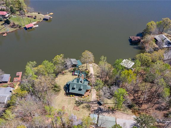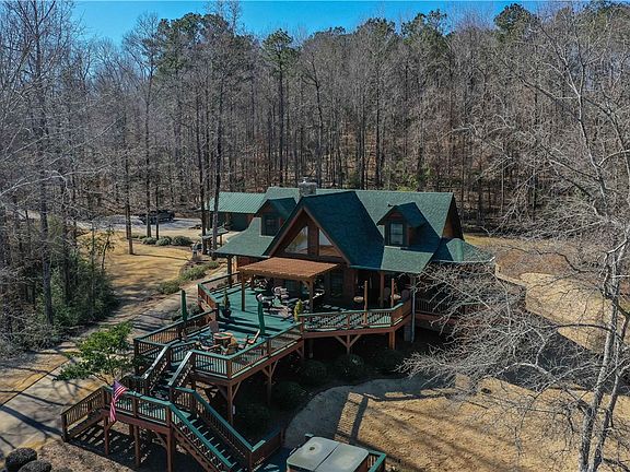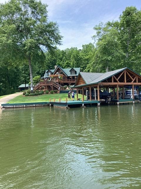 Crafted Custom Log Home nestled on a 1.3 acre lot with 521 feet waterfront on Lake Harding! Featuring 2814 square feet under roof to include wrap around porches and "Man cave". This lovely home boasts a cathedral ceiling with exposed wood beams and amazing views. Stone hearth with a wood burning fireplace will be the center of attention while overlooking pristine views of Lake Harding. Master bedroom is located on the main floor with a stone/tile/glass shower and deep soaker tub. Kitchen boasts stainless steel appliances, hickory cabinets and granite counters. Multiple deck areas for outdoor entertaining and hot tub. 2 covered boat slips with electric lifts and private boat ramp. Two car garage with man cave and 16 x 20 workshop/garage. Meticulous landscaping with Zoysia grass and tons of outdoor space to entertain at and enjoy those family gatherings!