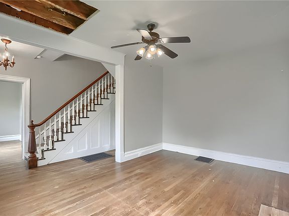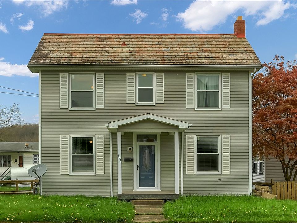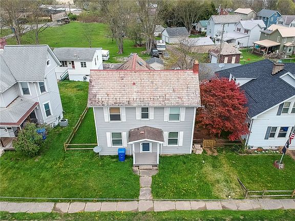 This charming, updated farmhouse is ready for a new owner. Stylish tones adorn this charismatic home and set the stage for your design. Front porch greets guests into the foyer with a tailored staircase and sprawling hardwood. To the right is the living room and to the left, through French doors, is the well-lit dining room with access to the chef s kitchen. Tile flooring, soaring cabinetry, abundant counter space, walk in pantry and stainless steel appliances will inspire the home chef. Slider adjacent to the kitchen leads to the oversized rear deck. Ascend to the sizable primary bedroom with vivid windows, ceiling fan and ample storage. A few steps away are the guest bedrooms with ample storage, bright window and stylish tones. A shared hall bathroom has a tile shower, pedestal sink and built in shelving. Enjoy the outdoors on the expansive rear deck and in the large yard with fencing. Shed provides storage for yard toys and tools. Minutes from the town shops and community pool.