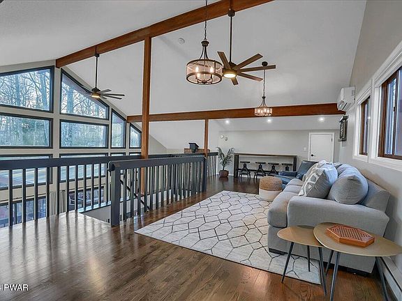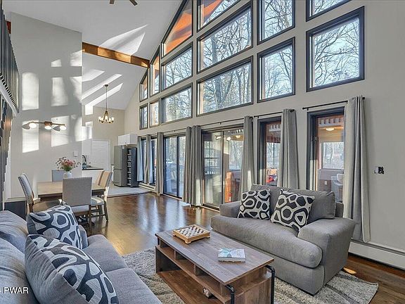 Discover your new sanctuary in this beautifully updated 3-bedroom, 2.5-bathroom contemporary chalet. With a thoughtful design and upgrades galore, this home offers a perfect blend of style and functionality. **2021 Makeover**: The home has undergone a massive transformation, bringing it up to date with the latest in design and convenience. Cook in style with quartz countertops, new shaker cabinets, a subway-tiled backsplash and stainless steel appliances. Beautifully refinished hardwood floors add a touch of elegance and warmth throughout the home. All bedrooms, 2 full bathrooms and essential amenities are located on the main level, with an additional ramp entrance for convenience and accessibility. The bright and airy sunroom will quickly become your favorite spot for relaxation and entertaining. Enjoy privacy and comfort in your spacious ensuite primary bedroom complete with a full shower bathroom. Versatile Second Floor Loft is ideal for a game room, home office or a sleepover spot for guests, offering extra space to suit your needs. 2-car detached garage offers space for your cars and for storage. Hemlock Farms Community offers an abundance of amenities, including beaches, lakes, indoor and outdoor pools, a clubhouse with a full gym, courts for tennis, pickleball, racquetball and more. With its recent upgrades and prime location, our home is ready to become your perfect full-time residence or weekend getaway.