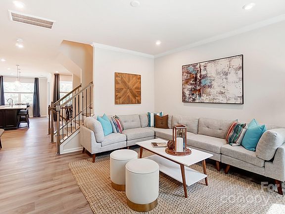 Tons of windows for natural light. This 4 bedroom, 3.5 bath 2 car garage, fantastic for someone looking for single family home or townhome. Covered deck off the back of the home on second floor. Plenty of room on each floor. First floor has a guest suite with full bath. Second floor has kitchen with large island tons of kitchen cabinets with upgraded appliances. Large great room and upgraded floors throughout. Third floor has owners suite, large bathroom, walk in closet. Down the hall has 2 additional bedrooms, hall bath, and laundry area. Step across the street to The Chestnut Square Park with soccer field, tennis courts, volleyball, walking trails and indoor Carolina Courts basketball. Next to the community will be a private swim club. Union County taxes and schools. Close to uptown Charlotte, Hwy 74 and I-485.