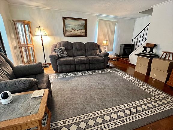 Nothing to do but move right into this cozy two-bedroom home! From the moment you step thru the new front door you will notice the gleaming hardwood floors in the spacious living room run throughout the home, and the decorative arched doorways of the entry way and dining room. The kitchen comes equipped with appliances. Step out of the kitchen and onto the L-shaped screened in porch. A great place to relax with morning coffee. The tabletop backyard is HUGE! An open slate to do as you wish. Upstairs you will find two spacious bedrooms with ample closets-the master boasts a double wide closet. There is an integral garage and driveway for convenient off-street parking, and beautiful new retaining walls adding to the curb appeal. There is a Pittsburgh potty in the basement. Situated a couple minutes walk to Kennywood Park, shopping, restaurants and West Mifflin High School.