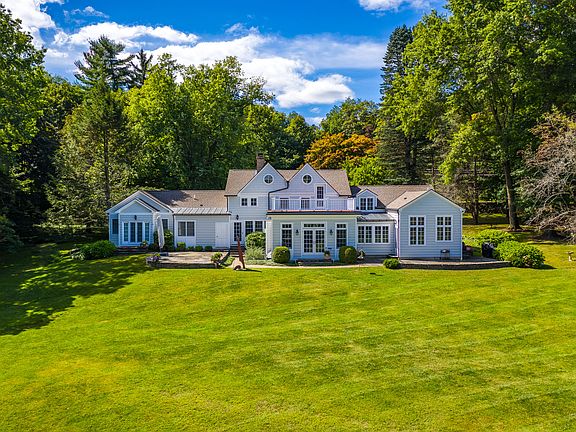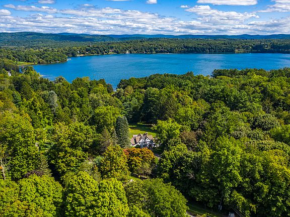 SPECTACULAR LAKEVILLE HOME WITH LAKEFRONT CABIN. Built in the 1940's this gracious elegant home has been updated over the last 15 years. Improvements include a large and elegant living room with fireplace, an open & airy kitchen, and a charming and private master suite on the main level. Walking distance from the main house the property has 200 lakefront feet on Lake Wononscopomuc. The secluded and private beach area includes an adorable seasonal cabin with a fireplace, a little beach and a long dock with views of the entire lake. A golf cart to traverse the property is included in the sale. Other features of the home include a large open dining room with fireplace, an inviting library with fireplace, a sitting room, an office, a cozy seating area in kitchen and a laundry room on the main floor. The master suite includes a large bathroom and two walk-in closets. There are three guest bedrooms upstairs complimented with two full baths. Also upstairs is a large media room with fireplace and porch. All this on 6+ beautifully landscaped acres. A unique and special property.