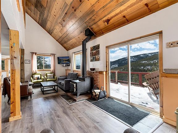 Welcome to your mountain retreat in the picturesque town of St. Mary's Glacier, Idaho Springs.! This meticulously upgraded 2-bedroom, Loft, 2-bathroom home offers the epitome of mountain living with modern comforts and scenic views at every turn. Step into the beautifully renovated kitchen, boasting granite countertops, stainless steel appliances, and exquisite wood cabinets, where culinary delights await. Cozy up by the charming wood-burning stove in the inviting living room, or step outside onto the expansive wrap-around deck to soak in the breathtaking mountain views. Enjoy upgraded bathrooms, plus, discover the versatility of an additional bonus bedroom or office on the upper level. Conveniently located just across from the renowned St. Mary's Glacier and a quick trip away from the vibrant downtown of Idaho Springs, this home offers the perfect blend of serenity and accessibility. With maintained roads, public water and sewer, you can enjoy the tranquility of mountain living without compromising on modern conveniences. Experience the essence of mountain living at its finest – This property does have a Short Term Rental Permit that is currently transferrable