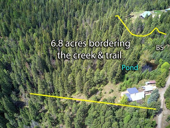Home on 6.8 acres bordering a year-round creek and offers trails through the community of Little Blacktail Ranch. A spacious living room that was built with lots of windows for natural lighting and an expansive wrap around deck, perfect for entertaining and beckons outdoor enjoyment. Newer master suite with a cozy fireplace, private bathroom, walk-in tiled shower, soaking tub and access to the covered deck that is ready for a hot tub. 3 bedrooms, an office area that is open to the kitchen and 2 bathrooms. Garage/shop building site just past the house. Seasonal pond. Mature trees, mountain views, and terrific neighborhood with well-maintained roads. Surround yourself w/tranquility & nature within minutes of Forest Service land & the river & endless recreational activities, snowshoeing, snowmobiling, fishing & hiking. Convenient to downtown CDA shopping, Silverwood amusement park & more.
