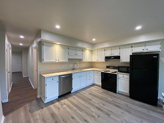 This 2 bed 1 bath apartment for rent is part of a duplex building. Laundry hookups are in the unit. This unit is freshly updated with new flooring and paint throughout. New lighting in every room was also a new upgrade to the apartment. The garage is attached to the unit with space to put 1 car.