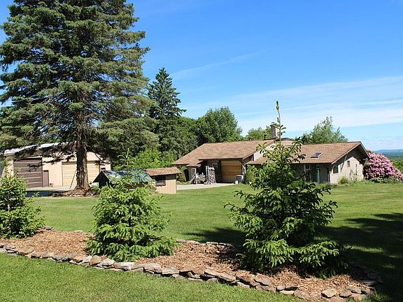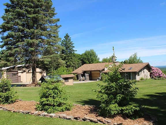 This property is a little piece of heaven. 52+ acres, nice mix of wooded and field. Has a private camping/picnic area. An apple orchard, lots of wild berries and beautiful garden. The house is roomy with 2 bedrooms and 2 private baths. There is a garage on the living level of the home as well as one in the basement. The detached garage is a mechanics dream Front and rear overhead doors, one extra height, two with remote openers and a powder room in garage metal roof. Lots of garage items negotiable . A wood stove insert in the family room, a ceramic wood stove in the living room and an antique wood cook stove in the kitchen in addition to the gas range/stove. Radiant heat through out the house and detached garage . Master bedroom has private bathroom with a jacuzzi tub, walk in shower and private commode with bidet' area. A spectacular view from the rear deck with a heated outdoor hot tub. There is a small out door covered porch off the master bedroom with lots of privacy .