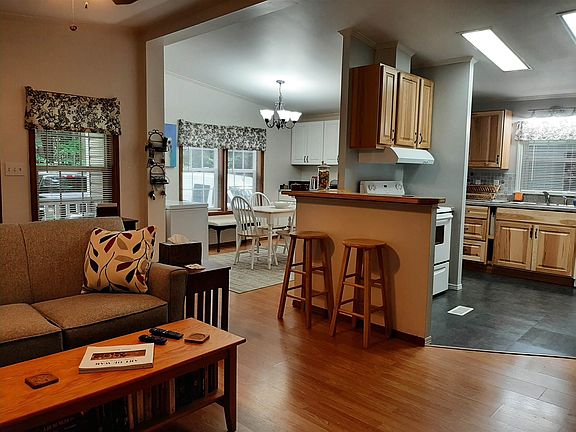 LIKE NEW DOUBLEWIDE MOBILE HOME LOCATED IN MOUNTAINVALE VILLAGE, A 55+ COMMUNITY. The floor plan is open concept with cathedral ceilings and a recently remodeled kitchen and master bath! A woodstove is included for those cozy winter nights. Many built-ins accent this lovely home. Wooded lot directly across the street provides a tranquil environment. Included in sale will be a sleep sofa in the guest bedroom. Outside enjoy your covered porch or perhaps a wonderful BBQ on your side deck with room for many. Also included is a double shed in the back for all your toys and tools. You name it, there's room. See you soon in Mountainvale.