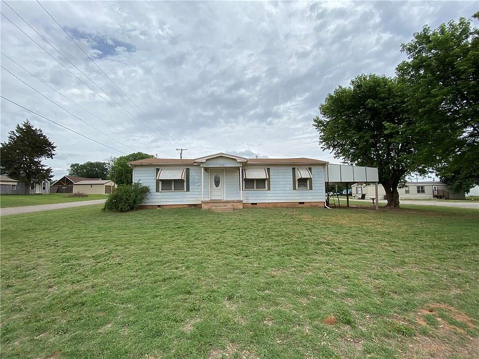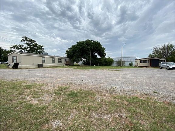 This is a corner property that includes a 3 bedroom home with Central Heat and Air, 3 bedroom Trailer, New central heat and air, good condition. The rental income is aprox $1300 month. The Maid Clean building rents a Lot. There is another space for trailer that has been completed for another Mobile home Lot income potential.