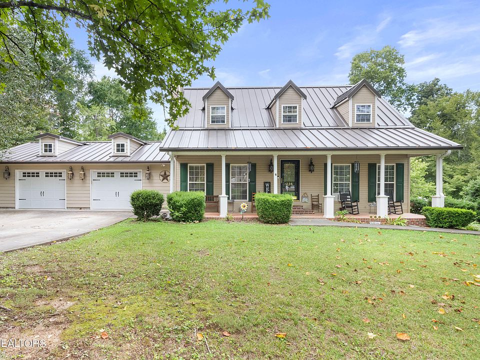 Stunning home on a corner lot! This home is ideally located only minutes to town, and centrally located between Knoxville and Chattanooga. The main level of the home is complete with a gorgeous entryway, a spacious living room with a gas fireplace, a large kitchen with a cook top-wall stove-dishwasher-refrigerator-trash compactor-microwave and a lot of cabinets and countertop space, a pantry, a beautiful dining area, a large laundry room, an office space, a rec room / sun room area, and a large master bedroom with ensuite and walk in closet, and a 1/2 bath completes the main level. Upstairs you will find 3 bedrooms and a bathroom, one of the bedrooms has its own outdoor entrance. An oversized 2 car attached garage / workshop, an additional 2 bay garage for mowers etc. and a large, attached carport. Outside you will find a beautifully landscaped yard, a great covered back porch, a very large patio area out back, a rocking chair front porch, concrete driveway leading to the main garage and a concrete circular drive as well. This home has so much to offer, it is a must see! Buyer to verify all pertinent information including sq ft.