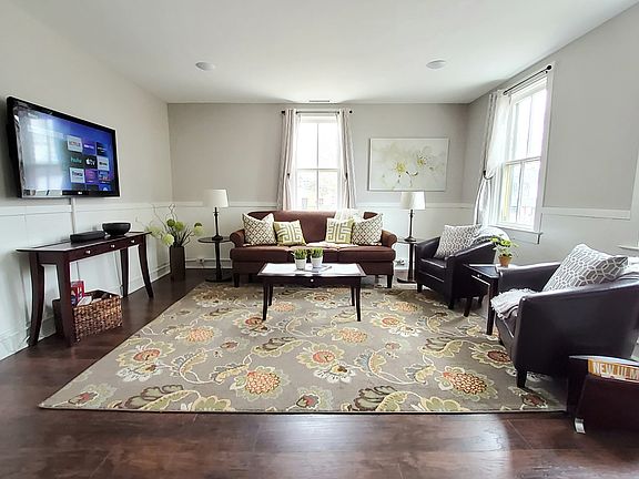 You will love this beautifully renovated fully-furnished 2 BR apartment, designed to provide a cozy, convenient, and homey experience. Relax and watch your favorite movie or TV show on the Roku enabled TV with a soundbar. Cook a quick meal in the full kitchen via the oven or the air-fryer. Use the Keurig or the good old-fashioned coffee maker. The kitchen is stocked with utensils, pots and pans, and essential spices. The bedrooms each have their own bed with pillow-top mattresses, box fans, alarm clocks, and room-darkening window treatments. The bedrooms are cozy, and the natural light that flows through makes a comfortable and relaxing personal space. The bathroom is modern and stylish, with a shower, toilet, and vanity. You can even kick back on the small deck on the second floor or in the yard.