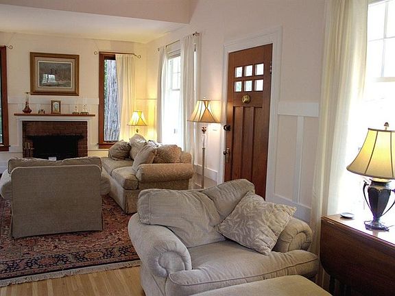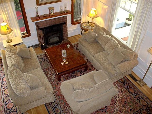 1920 CLASSIC CRAFTSMAN BUNGALOW, .4 acre, near downtown. Original details loved & preserved by successive owners. Brick fireplace with insert between two tall living room windows. Graceful arch between living and dining rooms, bay window in dining room, deep window seats, beamed shadow box ceiling. Classic entry door: tall, doug fir, accented by two rows of small windows. Modern kitchen convenience combined with old-fashioned charm, including sitting area, woodstove, lots of windows. Stacked washer/dryer off master, plus laundry in basement. Two bedrooms, two baths street level, +360 sq. ft. loft (bath, open area, used as bedroom, cozy eave) up handsome stairway. Craft studio off deck with separate entry. Deep lot, partially landscaped. Loft included in 2036 sq. ft.