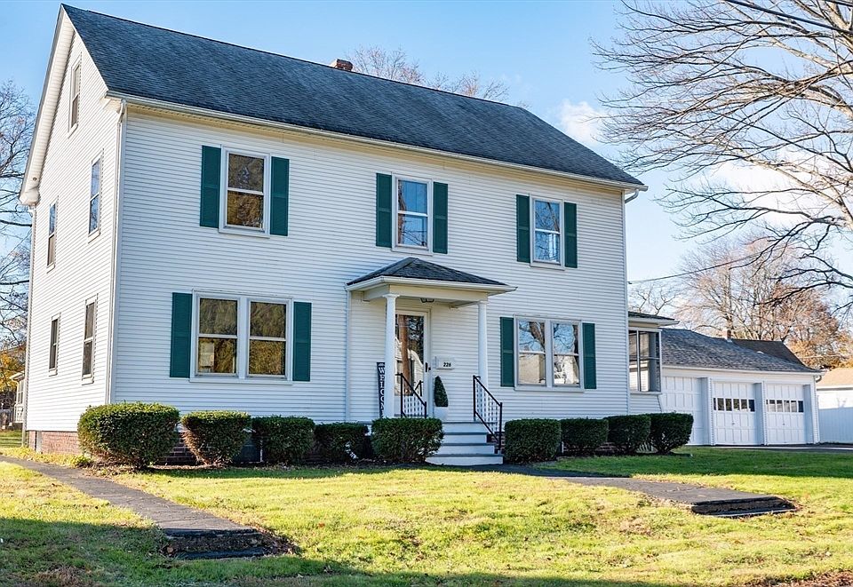 Step into this beautifully renovated 2,240 sq. ft. Colonial-style home situated on a spacious 0.39-acre level lot, ideally located near shops, restaurants, and major highway access. This home has been thoughtfully updated throughout and offers an impressive blend of charm and modern convenience. Enjoy a brand-new kitchen featuring a granite island, new stainless steel appliances, and a convenient first-floor laundry room with a state-of-the-art dual washer/dryer unit. The inviting layout includes an enclosed porch, gleaming wood floors, and two fully updated bathrooms with stylish finishes included a glass tiled walk-in shower. Additional highlights include a walk-up attic perfect for storage or future expansion, updated electrical, a three-car detached garage, and an exterior storage shed. Deferred showings until OH Sun 11/16 @ 11-12:30.
