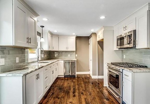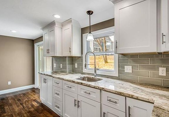 Quality renovation! Sun filled open floor plan. White shaker cabinets, granite countertops, new 3 1/2"wide hardwood flooring installed throughout. Bathroom with marble tile flooring and tile walls. Finished basement with wall to wall. Notable improvements include new roof, complete new wiring upgraded to 200 amp service, lighting, all new plumbing, furnace, central air, front walk, patio, bulkhead, garage floor, foam insulation in exterior wall in kitchen, bathroom, and family room. Note: new driveway is scheduled for installation week of April 17th.