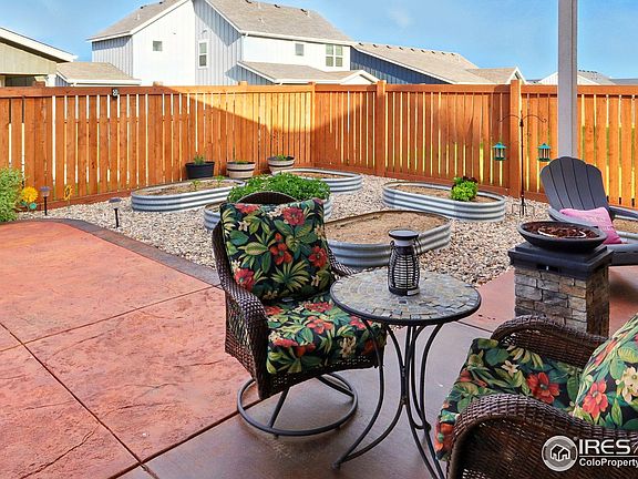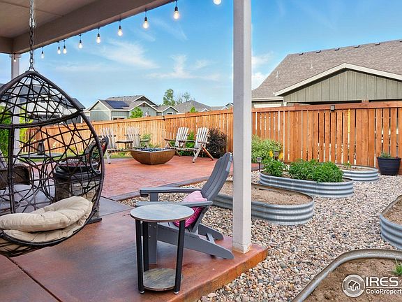 **New Pint Color for the Kitchen!**! Check out New Kitchen and Backyard Pictures. Preferred Lender credit available for rate buy down. Welcome to your dream upgrade home in Berthoud's new Farmstead neighborhood! This stunning corner-lot property offers 5 bedrooms, 3 bathrooms, and a spacious 3000 sq ft open-concept layout. Customized enhancements include an expanded kitchen with glass-door cabinets, a drink cooler, and upgraded cabinetry. The inviting living room showcases a gas fireplace with stone fa ade, live-edge shelving, and custom lighting.Enjoy stylish yet durable vinyl plank flooring throughout main areas, plush carpet in the bedrooms, and elegant 8" baseboards. Vaulted ceilings with faux tin and alder wood crown molding add sophistication to the living and master bedroom. Bathrooms boast premium shower doors, and the laundry room is optimized with stacked GE washer-dryer and additional counter space.Outside, relax in your private backyard retreat featuring a stamped concrete patio, five-seat hot tub, gas fire pit, and six raised garden beds. Low-maintenance rockscape covers half of the yard, all maintained by a zoned sprinkler system.The insulated three-car garage doubles as a man cave with a 35K BTU heater, drywall, and cheerful yellow walls. The fully finished basement includes 2 bedrooms, a luxurious bathroom with Jack-and-Jill sinks, gold fixtures, and tile finishes. Additional highlights include a dry kitchenette, built-in dinette, toddler play nook, barn-style doors, and shiplap accent walls.Originally built in 2022, this home has over $100K in documented upgrades. The welcoming community features planned recreational amenities and easy access to trails, schools, and downtown Berthoud's quaint offerings.