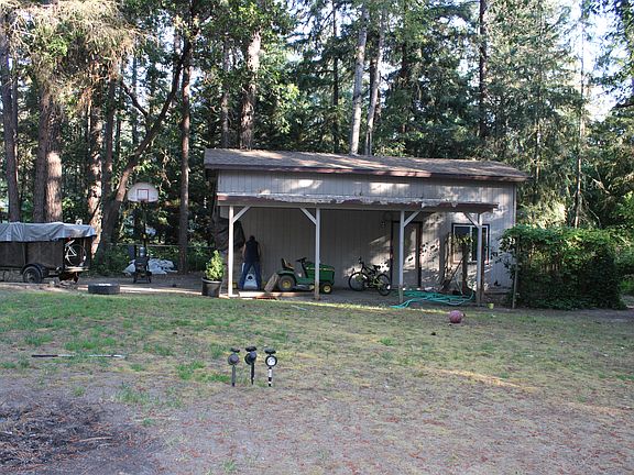 This 1490 square foot home on a wonderful treed acre with minimal yard maintenance required. County records show as 2 bedrooms because doorway was removed to make it a family room. Could easily be a third bedroom with attached bathroom if buyer requests it. RV barn has attached office / room and a loft. Some more bonuses are: attached 2 car garage, plenty of paved parking, lots of flowers. There is a large deck in back yard and the hot tub included. This is a great opportunity to be just a few minutes from downtown, but out in the country.
