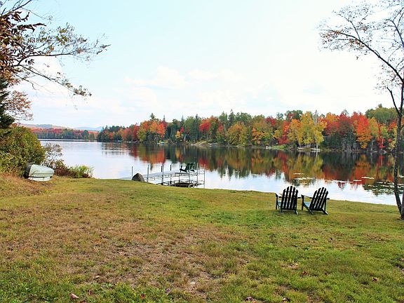 Lake front Timber frame - New in 2007, custom built kitchen and pantry with granite counters, over sized refrigerator & freezer, stone fireplace with vaulted ceilings, den/library, hardwood floors throughout, large walk out basement with french doors to your private dock, screened porch overlooking serene Adirondack Lake, located on 1.80 acres and bordered by state forest. Offered fully furnished and ready to enjoy