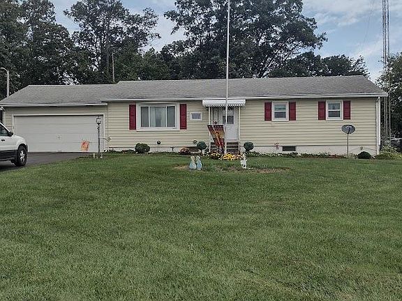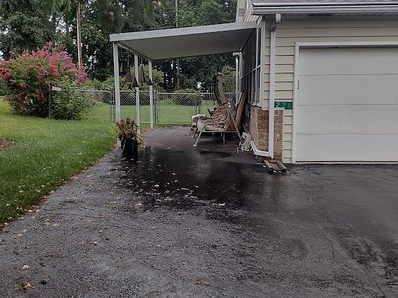 Take a look at this ranch stye home with so many possibilities. This property has .59 acres of decorative gardens. Views of the countryside. Room for your vehicles in the 2 car garage or carport. The garage has a built-in ramp for easy access to the kitchen. The kitchen features a breakfast bar and gains access to the dining room. Off the dining room is entry to the sunroom . The main bedroom has an exit with a ramp in case of emergencies. It also has a powder room with storage. The 2nd bedroom is currently a TV room. The 3rd bedroom currently has washer/dryer hookups. The lower level is partially finished with a large family room with thermal heating and a large storage room with washer dryer hookups as well. All the water conditioners and sanitizers convey. Chain linked fence surrounds the large back yard with 3 storage sheds. use your imagination. Access to the heat pump is above the garage.