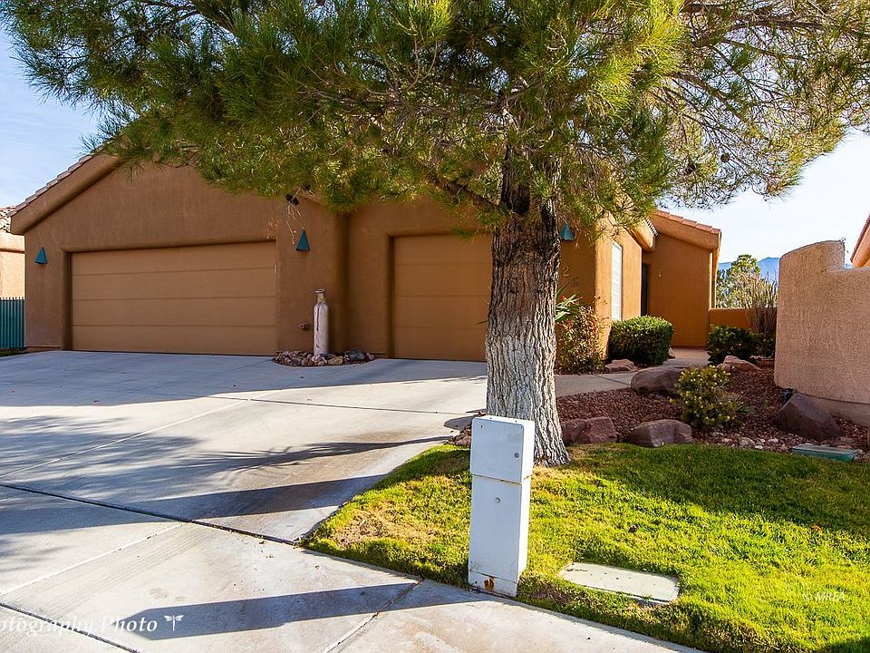 This spacious home is located in Pinnacle II, a gated community adjacent to the Arnold Palmer designed Oasis Golf Course. Desirably positioned, this home is surrounded by lush, green landscaping and a beautifully manicured common area. The mountain view is absolutely gorgeous and the southeast orientation is ideal. The scenery from the balcony is panoramic. Enjoy the city lights at night and the mountains as they change colors with each sunrise and sunset. The home has two master suites, one on each level. The floor plan is open and the ceilings are vaulted. The kitchen has a lengthy raised bar, providing ample room for bar stools and entertaining. Each bedroom has access to the outdoors and a full bathroom. The laundry room and half bath are on the main level. The home was recently painted in a neutral tone and both HVAC units are new. The large 876/sf 3 car garage has custom cabinets and ample room for vehicles. The community is within walking distance to the Oasis Golf Course, country club and two restaurants, The Redd Room and Oasis Grill Room and Bar. The monthly HOA fees include access to the adjacent Mesquite Vistas swimming pool, spa, tennis courts and fitness facility.
