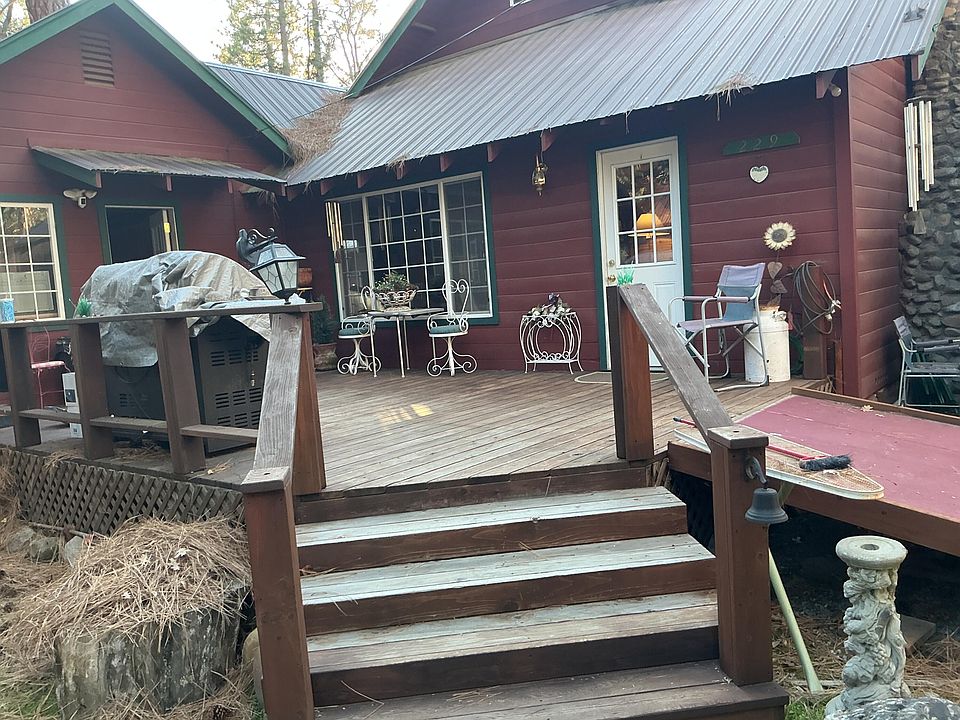 Come relax and enjoy the mountain surroundings this comfy cabin offers. Stand at your kitchen window and enjoy watching the peacefulness of the mountain stream that runs behind the property. This kitchen offers plenty of cupboards and counter space. The Center Island has both a cooktop as well as room for seating. Enjoy the open living room with a bench to sit and enjoy the view from a large picture window looking onto a deck. Master bedroom has French doors that open to a deck to relax on. Magnetic screen doors can let you experience the mountain breezes. Home is equipped with a Generac generator, several tuff sheds & out buildings, numerous decks and a brick fire pit for the cold nights. Spacious garage with 1/2 bath and a small separate storage room space. Come create your own mountain enjoyment! Escrow to be at Porterville Stewart Title/ Judy Loflin