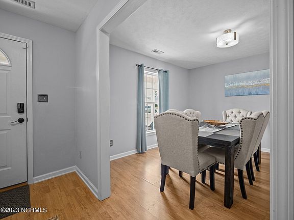 Southern charm at its finest! This adorable home is in the quaint neighborhood of Coral Ridge. As soon as you pull into the drive you will notice the pristinely maintained yard, with a large vinyl fence. Once inside you will be greeted with a welcoming foyer and large dining room, the perfect place for making memories over meals! As you make your way through the kitchen take note of the custom backsplash and how many cabinets there are! More than enough to store all those kitchen gadgets! The living room with vaulted ceilings is cascaded with so much natural light and has plenty of room for everyone to gather and connect. Need a little rest and relaxation? Look no farther than the master bedroom. It provides a discreet and comforting setting to enjoy the peace and quiet that the neighborhood delivers. Who said summertime? This massive backyard is the perfect place for BBQ'S, outdoor activities, and nighttime bonfires. Conveniently located to the crystal coast beaches, shopping, and dining. It's also just a short commute to the military bases. Call today to schedule your private tour!