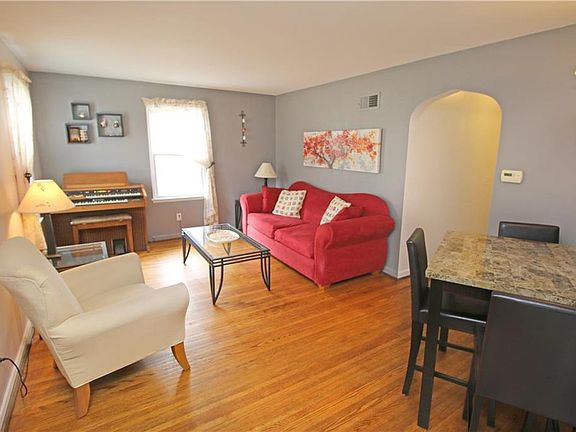 Charming Cape Cod! This wonderful home is full of charm from the gleaming hardwood floors throughout, built in shelf in the entry way, gorgeous archway in living room and french doors leading into the family room. Inside, you will find 3 spacious bedrooms and 1 full bath. The modern updated kitchen has white cabinets and plenty of storage space with 2 pantries, one is an enormous walk in! You'll love the first floor laundry and extra living area in the back half addition. Possible 4th bedroom! The large fully shaded backyard has a huge patio. Low maintenance vinyl siding and a high efficiency furnace will give you a huge peace of mind. This is a home you won't want to miss!